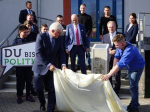 Die Säule mit der Aufschrift „Die Würde des Menschen ist unantastbar“ wurde in Kooperation des Ausbildungszentrums Bau Holleben mit der AWO SPI GmbH angefertigt